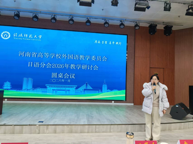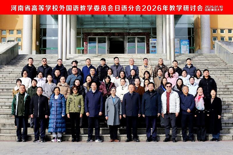 为深入贯彻新时代外语教育改革精神,进一步推动高校日语专业高质量发展,2026年1月10日,河南省高等学校外国语教学委员会日语分会2026年教学研讨会在信阳师范大学顺利召开。本次会议汇聚了省内多所高校日语教育专家、一线教师及行业代表,围绕日语教学改革、人才培养与就业对接等议题展开深入研讨。我院日语专业教师张天及专业负责人金珽实参加了本次会议。