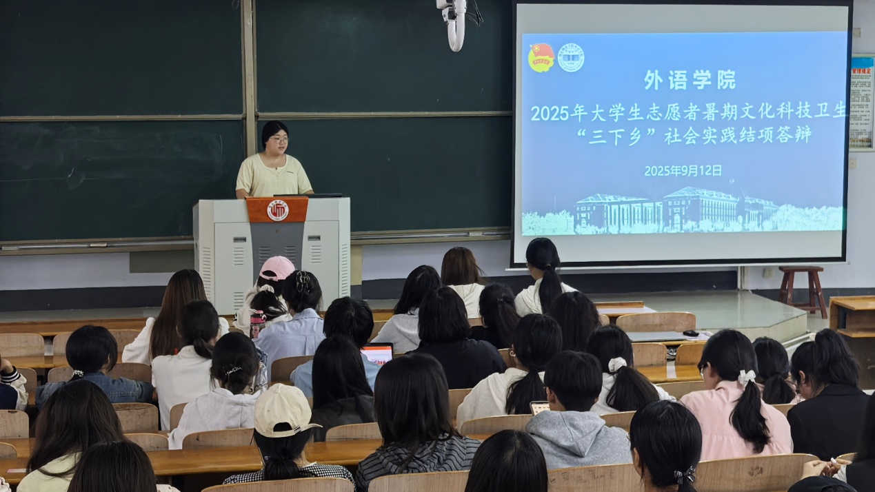 为全面贯彻落实习近平总书记关于青年工作的重要思想,充分发挥实践育人在构建“大思政”工作体系和“三全育人”格局中的重要作用,9月12日,外语学院于智圆楼109教室举行2025年暑期“三下乡”社会实践结项答辩。学院各年级辅导员和30余支实践团队负责人参加此次答辩。