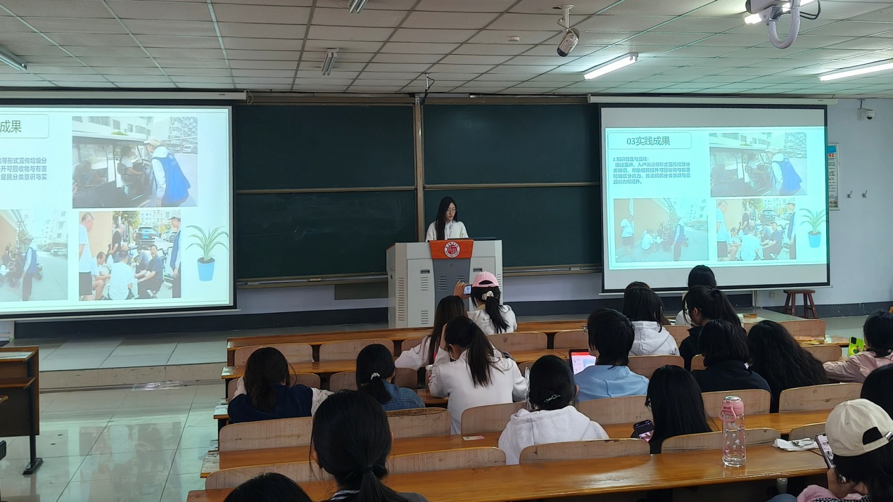 答辩会上,各团队负责人通过PPT展示,从实践内容、成果成效、创新特色等多个维度,对实践项目进行了全面详细汇报。从双语宣传非物质文化遗产到加快生态文明建设,从关爱银发老人到多语种宣讲红色精神,从提升乡村小学英语课堂趣味性到纠正景区标语翻译错误,外院学子将课堂所学与社会实践相结合,用扎实的行动展现专业担当与青春风采。