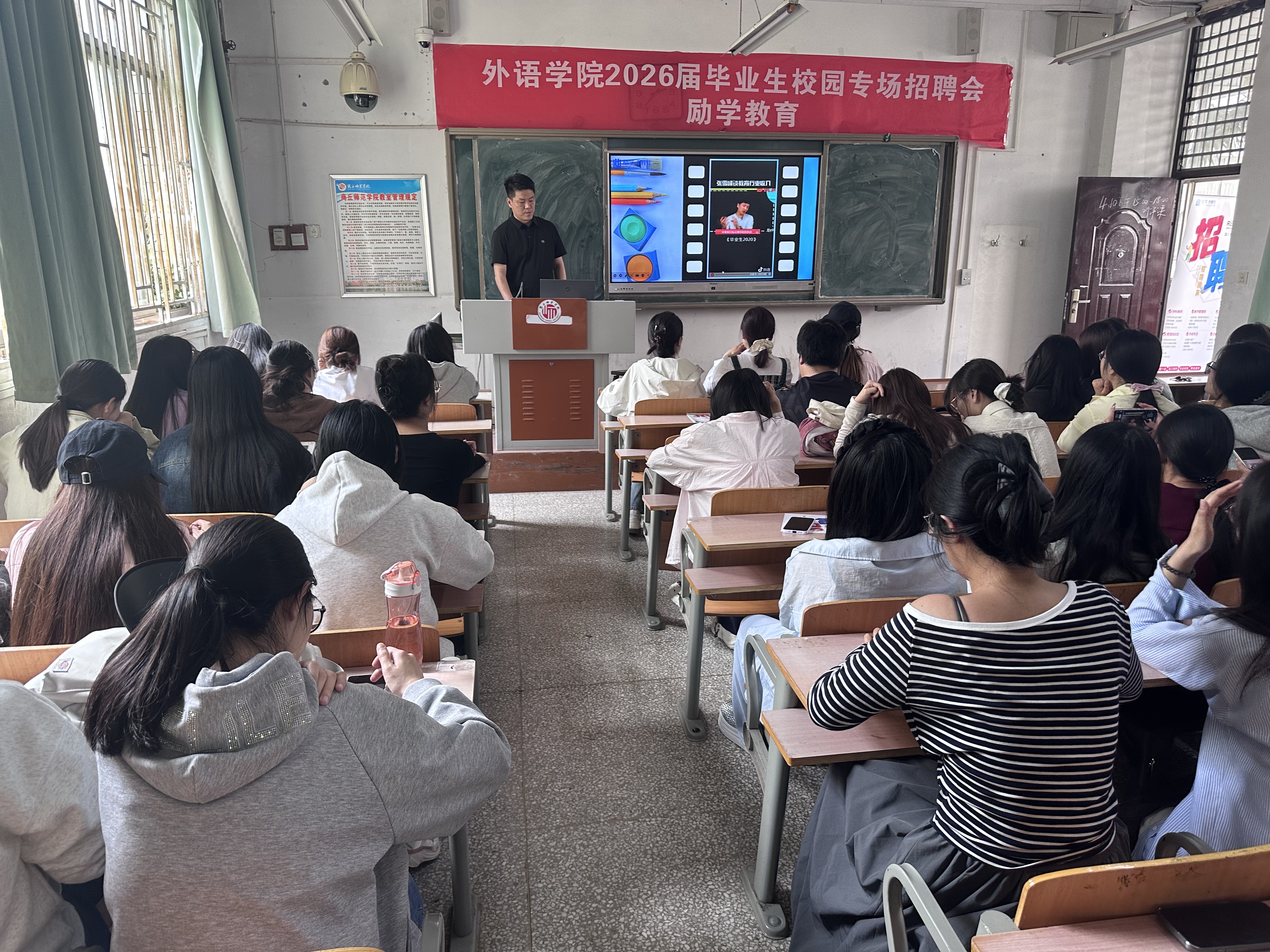 为持续拓宽2026届毕业生就业渠道,精准对接优质教育培训行业岗位资源,助力毕业生高质量就业,4月17日下午,外语学院于智圆楼114教室举办2026届毕业生校园专场招聘会——励学教育专场宣讲会,外语学院2026届在校毕业生参加。