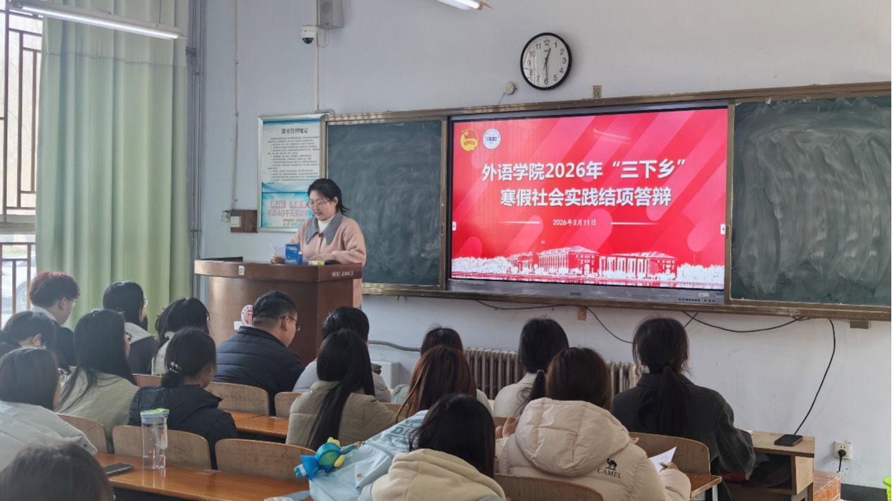 此次答辩既是对2026年寒假“三下乡”社会实践成果的集中检阅,也为各团队提供了互学互鉴的交流平台。实践团成员们纷纷表示,将继续以外语为翼,践行“奉献、友爱、互助、进步”的志愿服务精神,在基层实践中锤炼专业本领,用语言力量讲好中国故事、助力乡村发展,真正在社会课堂中“受教育、长才干、作贡献”。