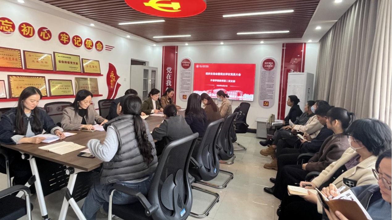 为深入学习贯彻党的二十届四中全会精神,持续强化教师党支部政治功能和组织功能,推动党建工作与教学科研育人深度融合,3月27日,外语学院教师第二党支部在应天楼212活动室召开年度组织生活会暨民主评议党员大会。会议由党支部书记刘敏主持,支部全体党员教师参会。