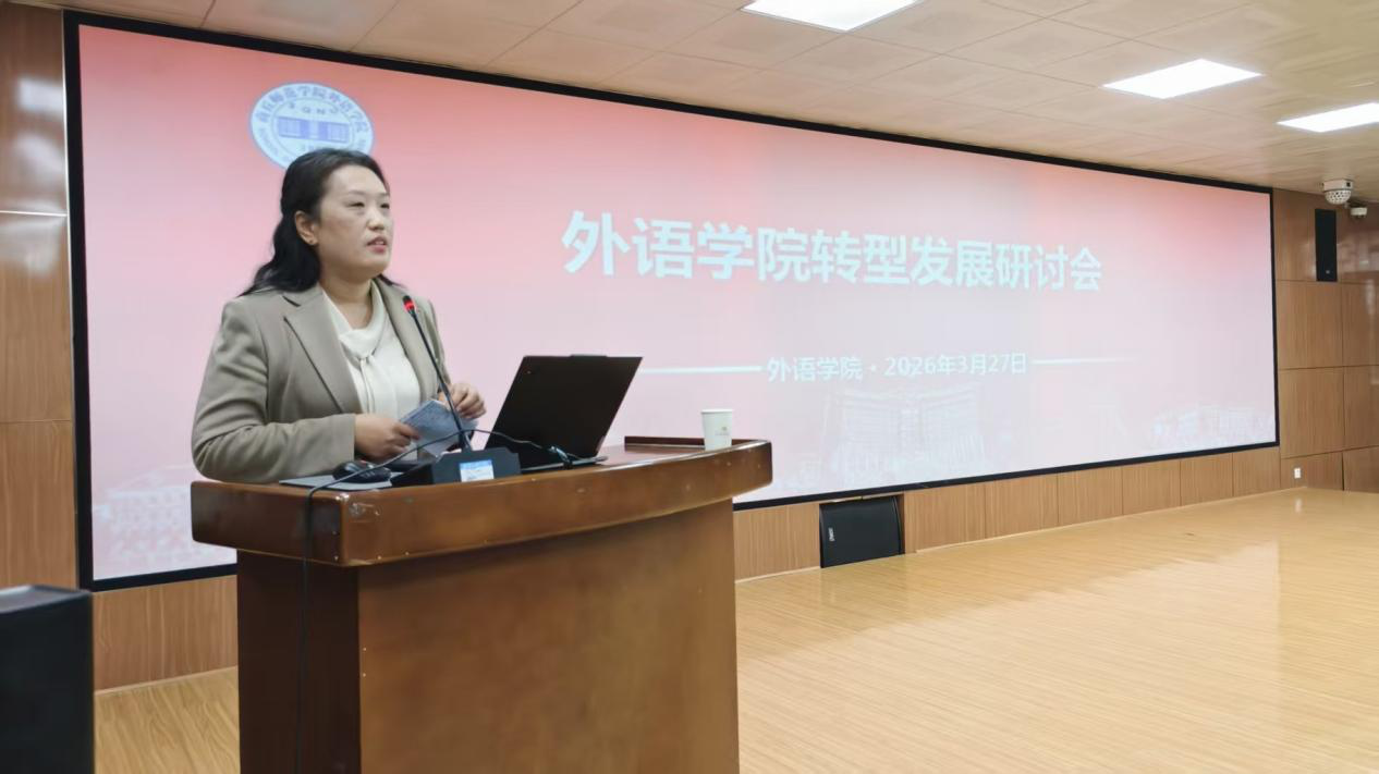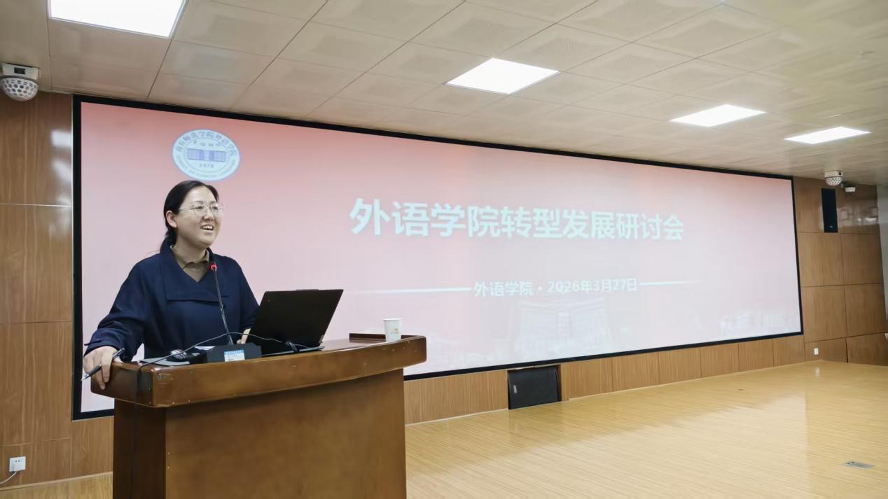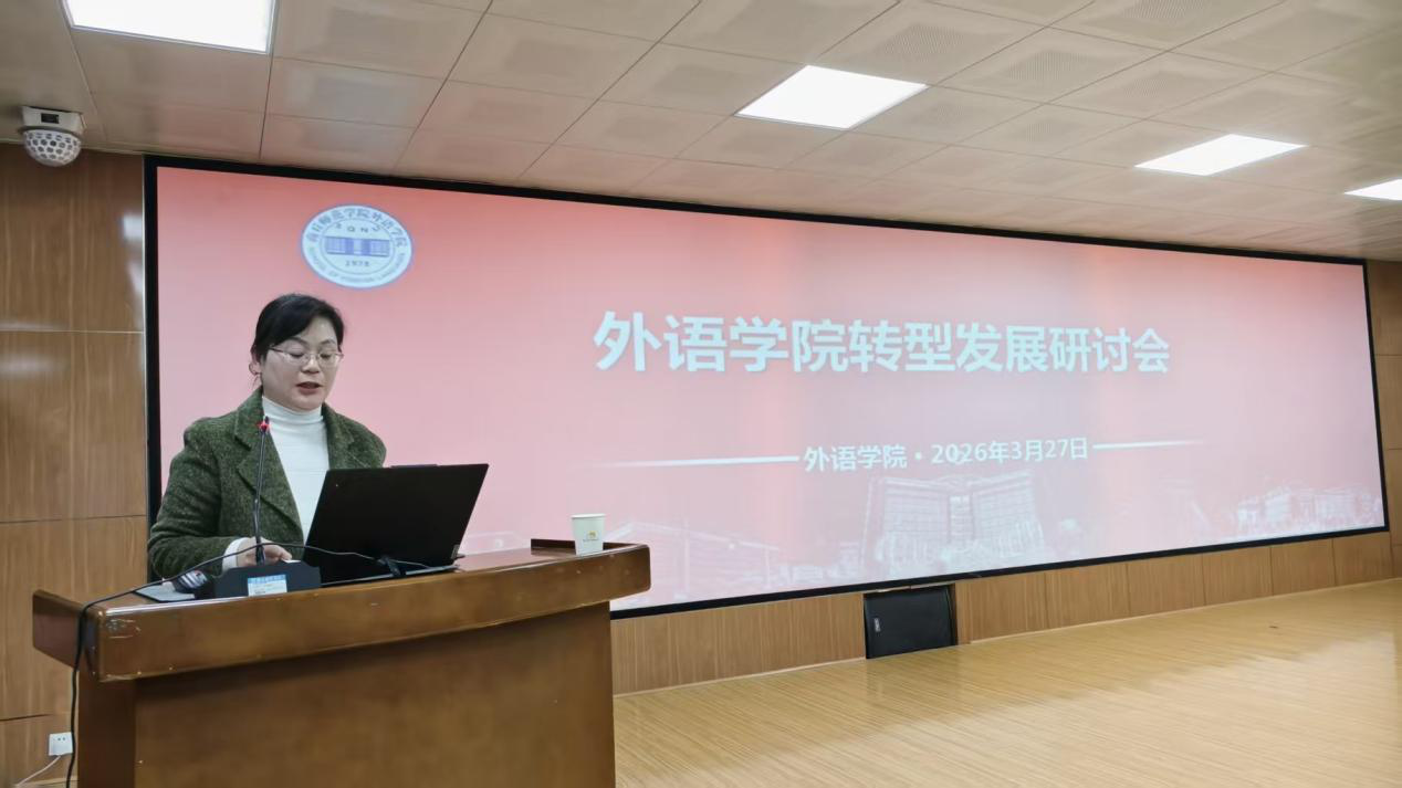 2026年3月21日至22日,第十届高等学校外语教育改革与发展论坛在北京隆重召开。本届论坛以“融通中外 数智赋能”为主题,汇聚了来自全国外语教育领域的两千余位专家学者,共商“十五五”时期高等外语教育创新发展路径。为深入贯彻论坛精神,积极响应外语教育创新发展和我校外语专业转型发展要求,3月26日至27日,外语学院英语专业、日语专业、翻译专业、商务英语专业和大学外语教学部分别召开专题研讨会。在各系部前期研讨的基础上,3月27日下午,外语学院召开“外语学院转型发展研讨会”汇报会,凝聚共识、擘画蓝图,探索外语学科高质量发展和专业转型新路径。