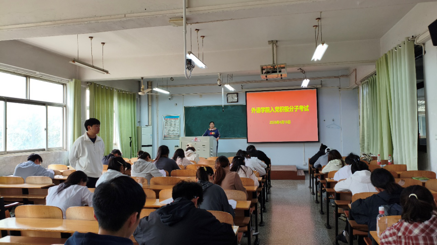 为深入考察入党积极分子政治理论素养,全面检验前期理论学习成效,严把党员发展“入口关”与“质量关”,扎实推进党员发展工作,4月16日下午,外语学院于智圆楼217教室举行第58期入党积极分子考试。本次考试由外语学院学生第二、第三党支部书记王贺乾、常素枝担任监考,2026年上半年(第58期)入党积极分子参加此次考试。