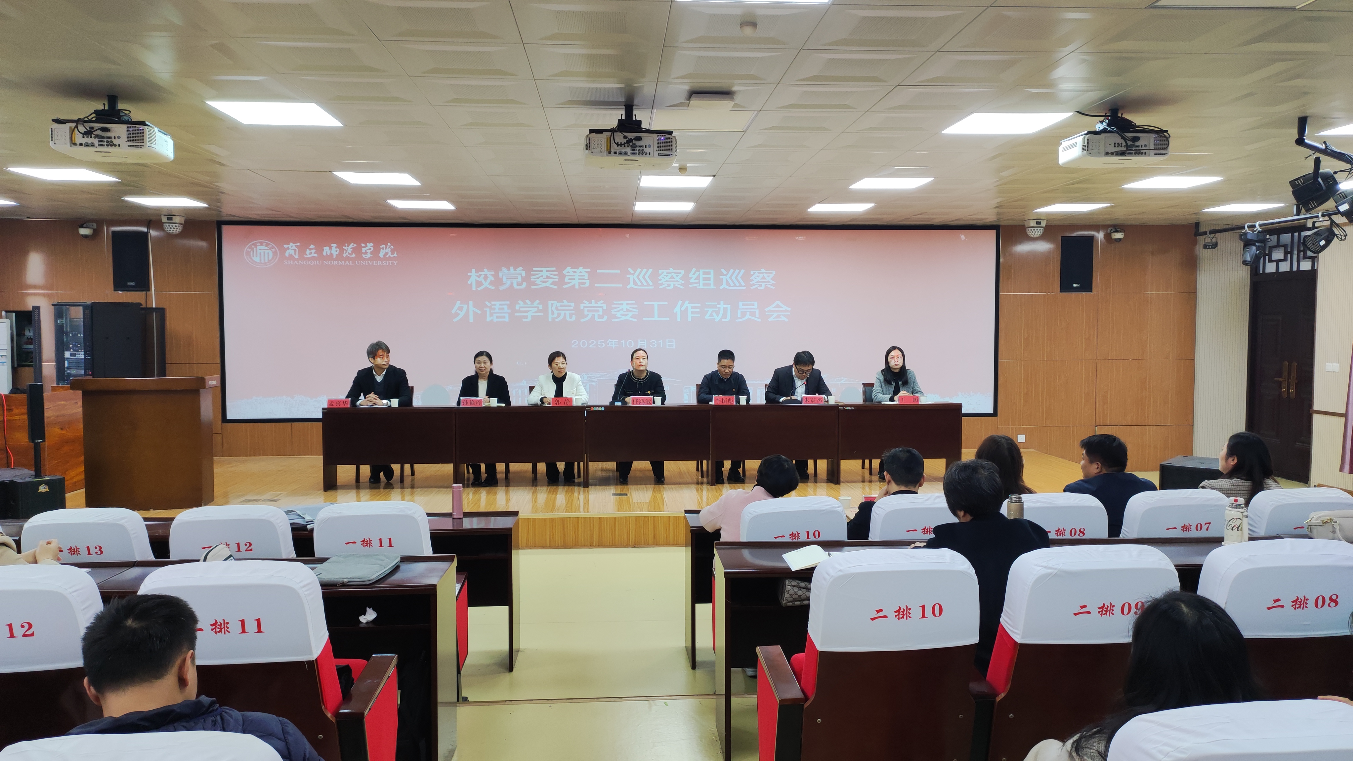 为深入贯彻落实全面从严治党要求,推动学校高质量发展,按照校党委统一部署,校党委第二巡察组正式进驻外语学院,开展为期30天的专项巡察工作。2025年10月31日下午,校党委第二巡察组巡察外语学院党委工作动员会在智圆楼219多功能室召开。校党委第二巡察组组长任鸿敏,副组长李振彪、郭静及成员张文英、李毅然、张南、张晓辉、王晓晓出席了会议。外语学院党政班子全体成员、外语学院全体教职员工参加了会议。会议由外语学院党委书记朱震杰主持。