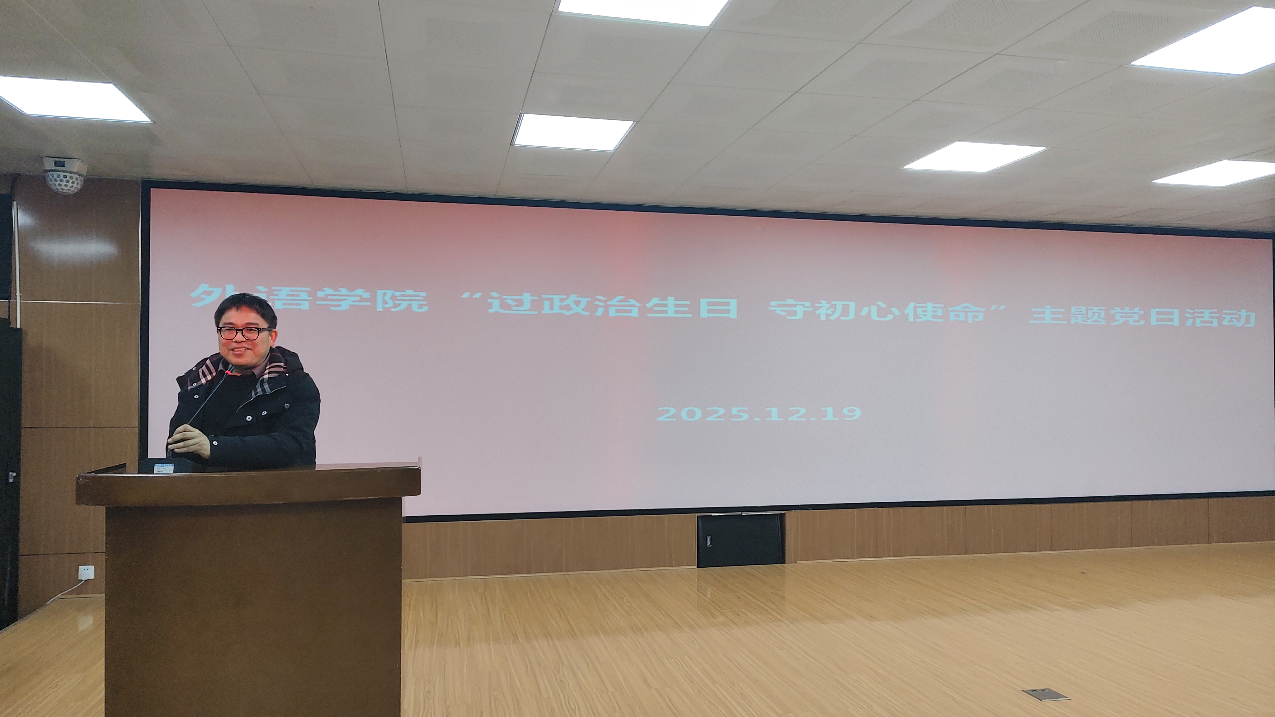 为强化党员身份认同,凝聚奋进力量,12月19日,外语学院在智圆楼219多功能厅开展“过政治生日 守初心使命”主题党日活动。活动由学院党委书记朱震杰主持,全体党员参加。