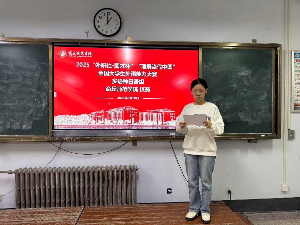 2025年9月26日,由教务处主办、外语学院承办的“外研社·国才杯”“理解当代中国”全国大学生外语能力大赛多语种组校赛,在我校梁园校区智圆楼106教室举行。